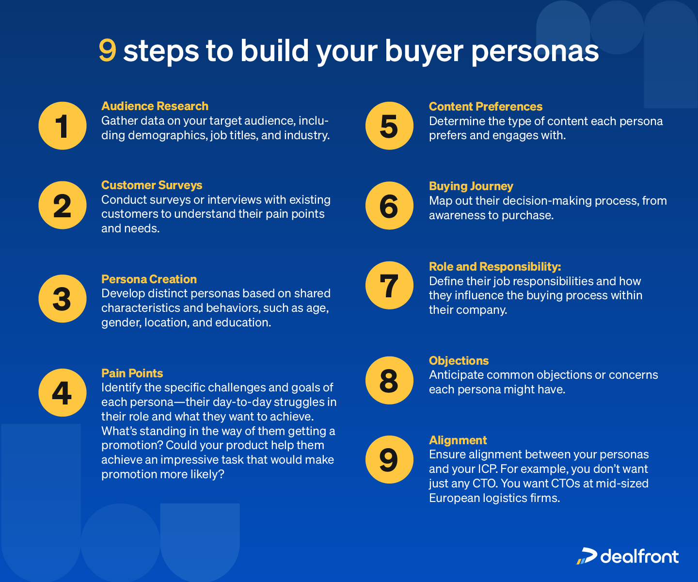 With a well-defined ICP, you can create targeted, efficient marketing campaigns. Steps to building your ICP include: