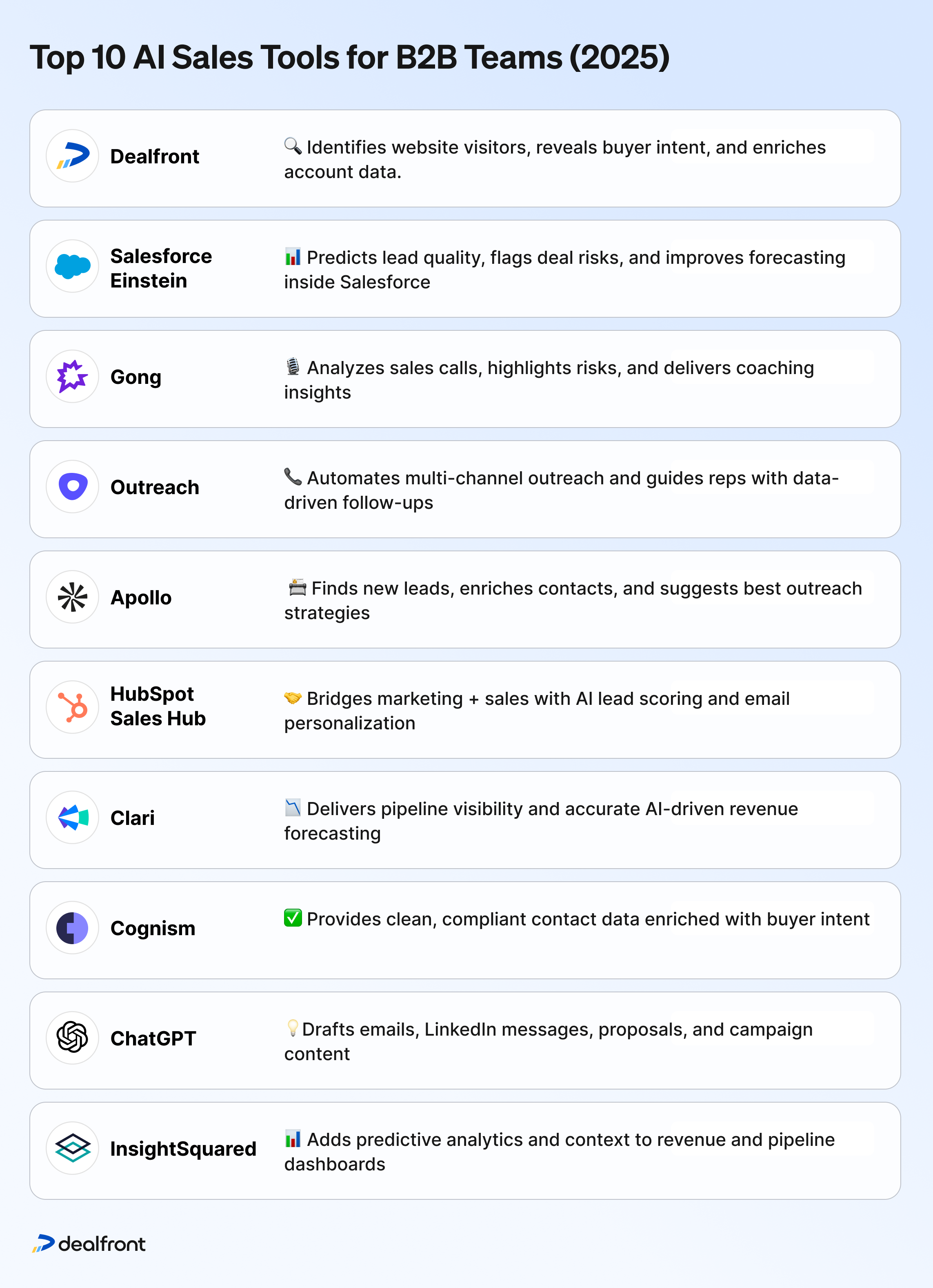 We’ve curated a list of ten of the most widely adopted and effective AI sales and marketing tools in 2025, tools that revenue teams around the world rely on to streamline workflows and drive predictable growth.