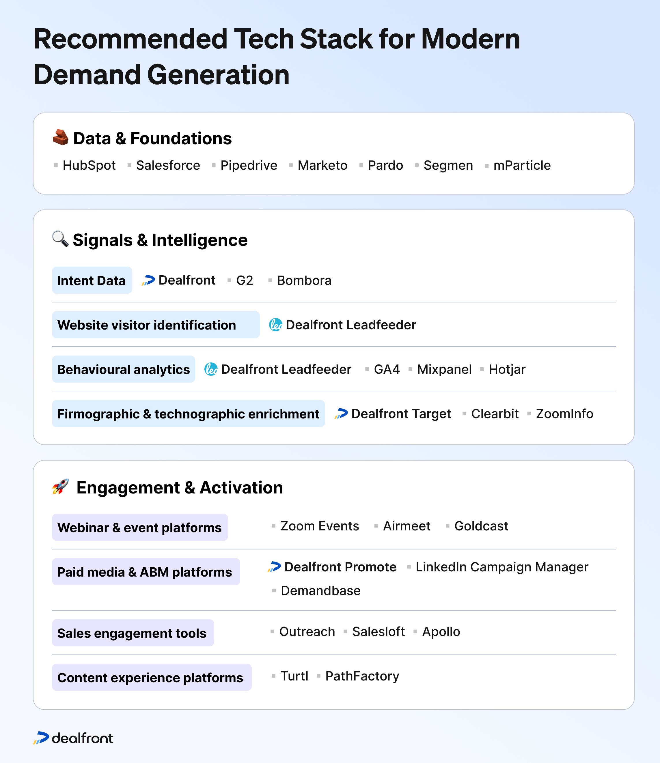 Strategy sets the direction; platforms power the execution. Below is a high-level view of the major categories shaping modern demand engines, and where each type of platform fits.