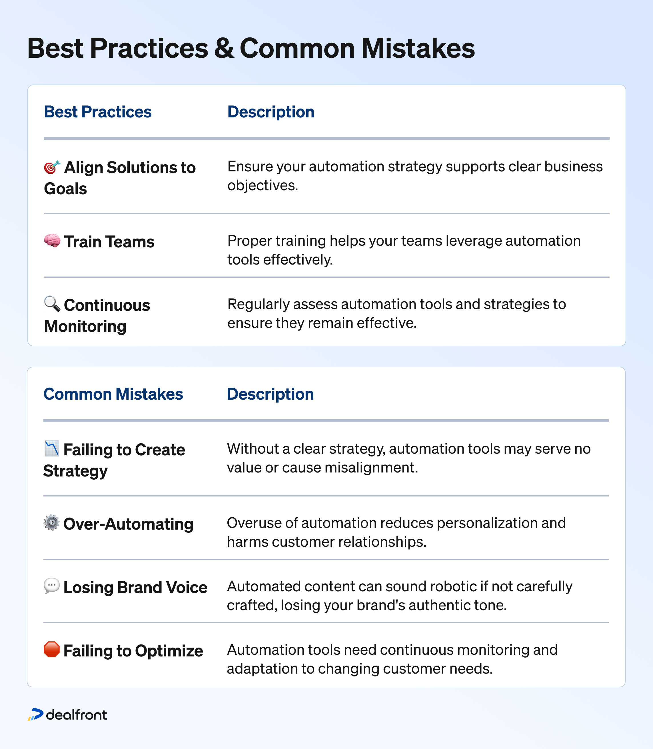 This goes for all of your automations. Continuous monitoring and optimization allow you to swiftly spot problems and adapt automation strategies to meet dynamic customer needs and business goals.