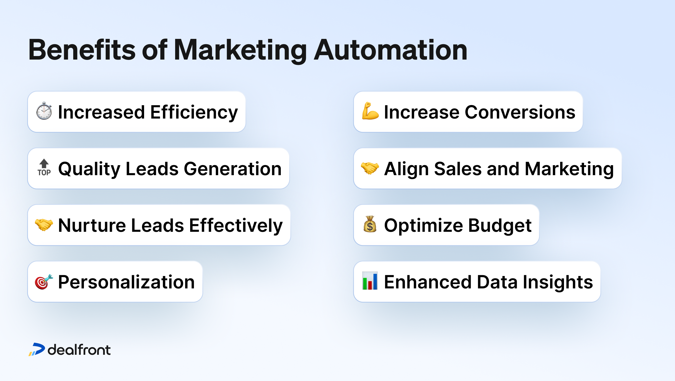 Marketing automation directly increases conversions. It helps you create consistent, personalized experiences that smoothly guide leads through your funnel.