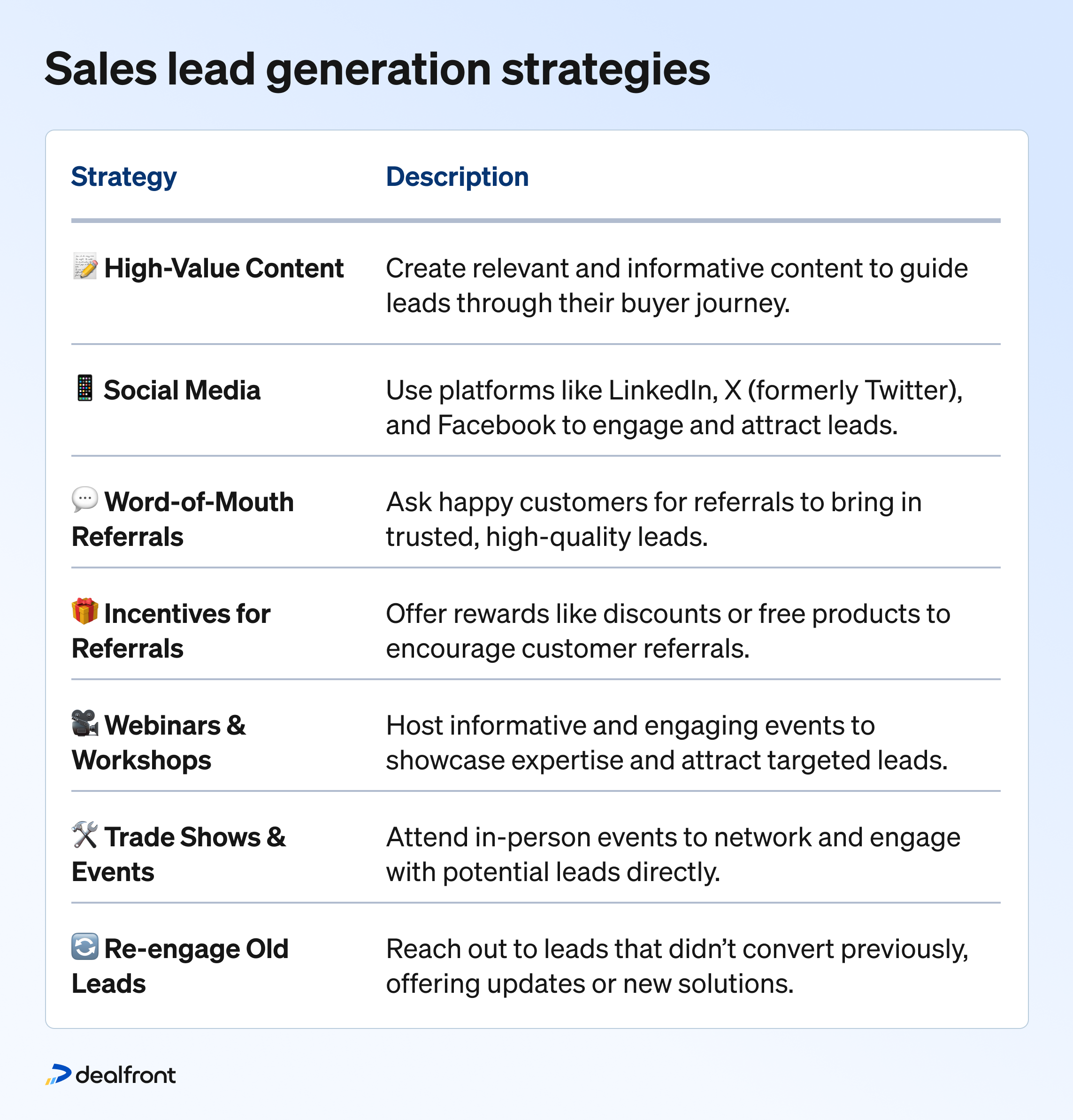 But what are sales leads strategies that work? These are our top seven methods for generating high-quality leads: