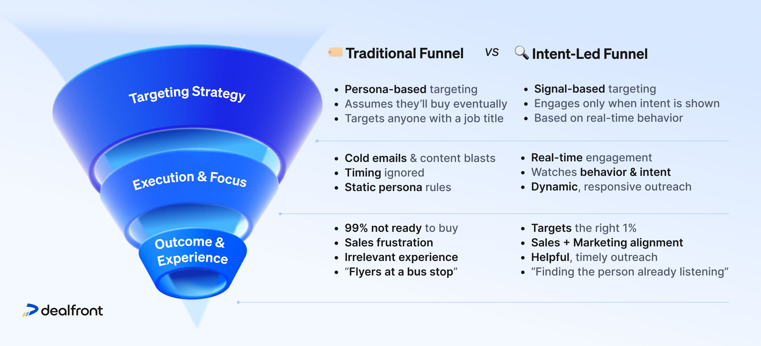 Traditional outbound strategies, especially the persona-only kind, assume that if someone could buy from us, they eventually will. So we push content, ads, and cold emails to anyone who fits the job title, regardless of whether they’ve ever shown an ounce of interest. But that’s wildly inefficient.