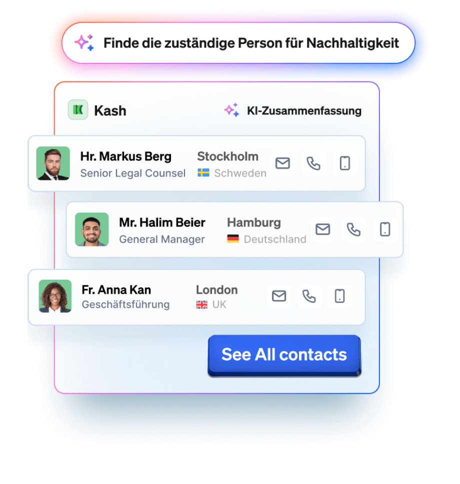 Finde die richtige Ansprechperson – auch wenn Du den genauen Jobtitel nicht kennst. Beschreibe einfach die Rolle und die KI übernimmt den Rest.