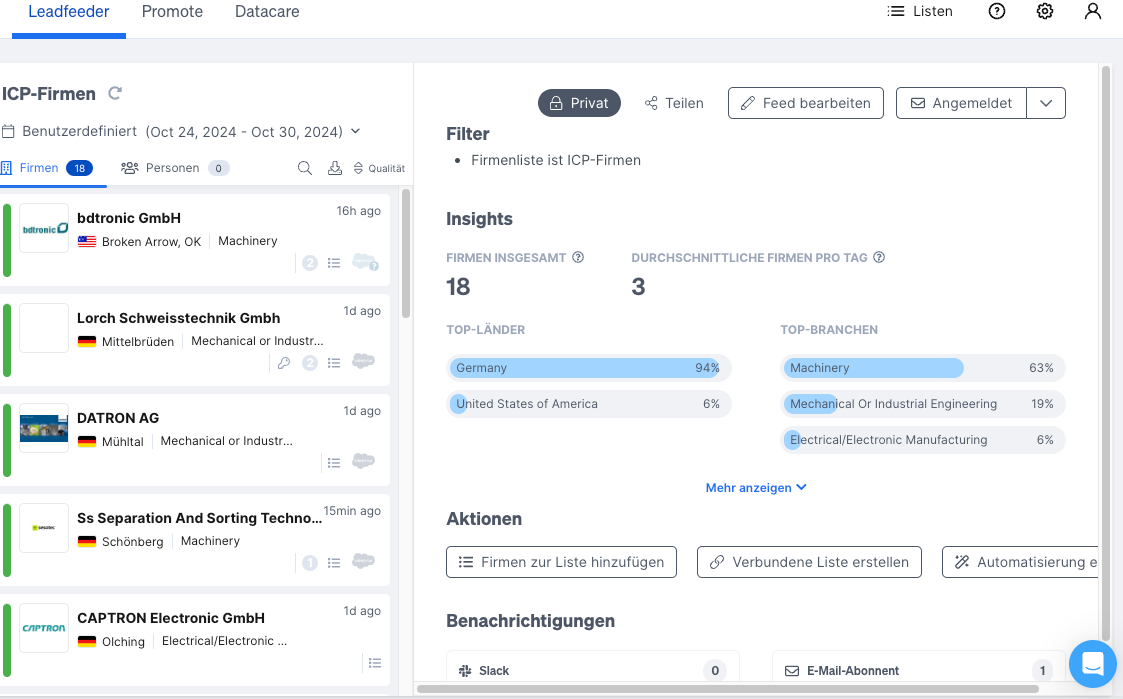 ![Setze einen Custom Feed in Leadfeeder für die ICP Firmen auf]()