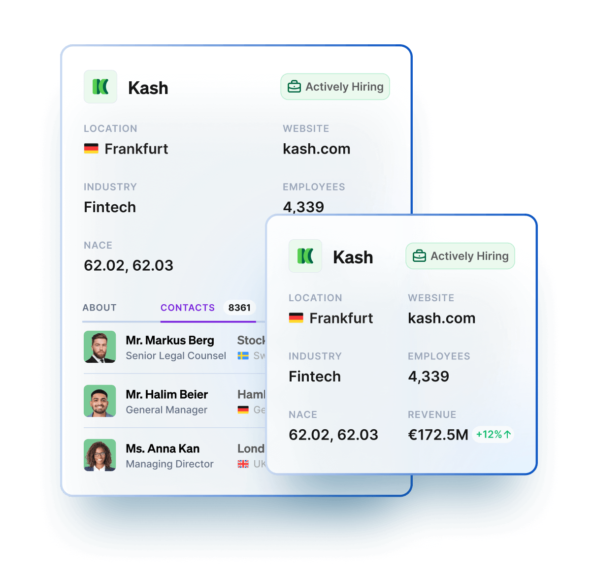 Erhalten Sie Zugriff auf über 30 Echtzeit-Triggerereignisse wie Unternehmenswachstum, Neueinstellungen und Expansionen.