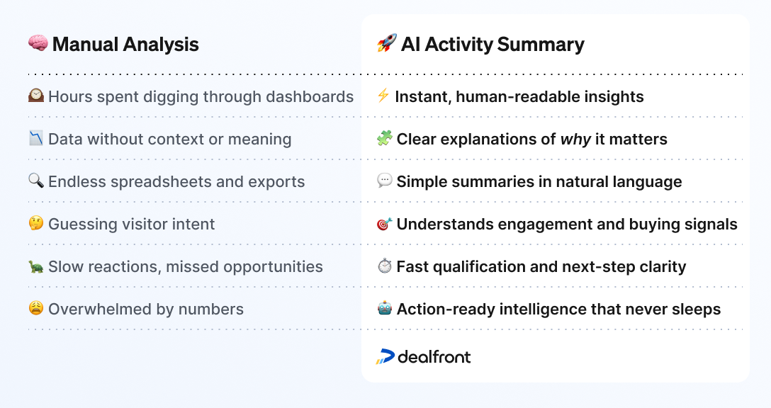 Here’s how AI Activity Summary transforms raw website analytics into actionable intelligence for your teams: