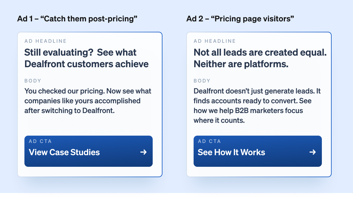 Run bottom-of-funnel creative (e.g., case studies, ROI calculators, demo CTAs)