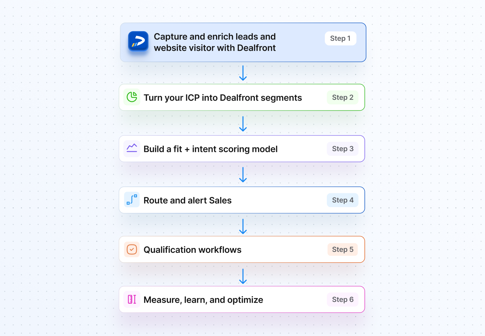 Dealfront provides the firmographic, behavioral, and intent signals needed to make those decisions in real time. By the end of this Playbook, you’ll know how to turn anonymous website traffic into Account Qualified Leads and route the right opportunities to sales with confidence.